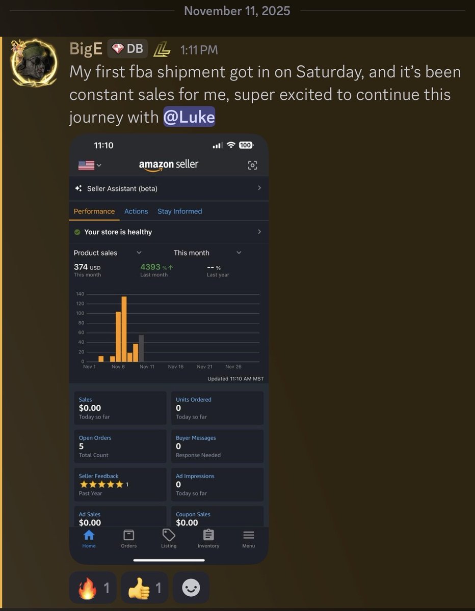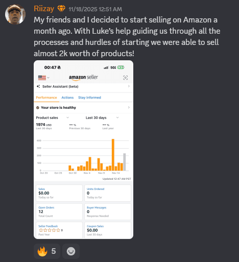 "Thanks to Luke, there was no noise only steps that actually worked. He broke down the entire process into something actionable and predictable. Within weeks I was getting consistent sales and finally felt in control of my Amazon store"